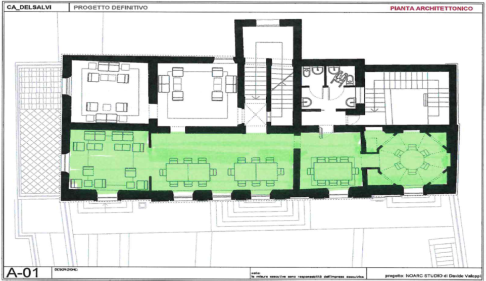 Gli spazi adibiti ad aula studio sono esclusivamente le 4 stanze al primo piano della Casina del Salvi (evidenziate in verde)
