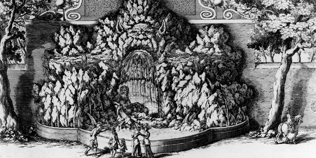 G. F. Venturini (1650-1710), Fontanone rustico nel giardino del signor Prencipe Borghese, incisione, ICG, Gabinetto Nazionale delle Stampe