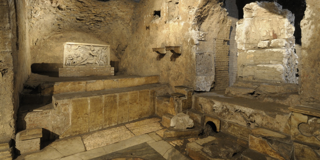 Il Mitreo del Circo Massimo fu scoperto nel 1931 durante i lavori eseguiti per realizzare un deposito di scene e costumi del Teatro dell'Opera all'interno dell'edificio dei Musei di Roma. Il vasto complesso antico era situato a breve distanza dal lato corto del Circo Massimo, dove erano le gabbie di partenza per i carri (carceres). Nel III secolo d.C., al pianterreno di questo complesso, fu adattato un mitreo, luogo di culto dedicato al dio Mitra, composto da una serie di ambienti comunicanti, coperti da volte a botte. Al suo interno furono ritrovati un rilievo ed una grande lastra marmorea entrambi raffiguranti l'uccisione del toro cosmico (tauroctonia), la cui morte promuove la vita e la fecondità dell'universo, ancora oggi conservati in situ.