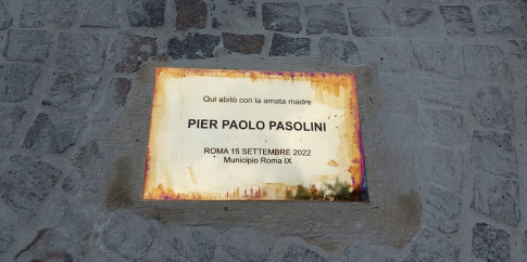 La targa è collocata in via Eufrate n. 9, di fronte al palazzo in cui Pasolini ha vissuto dal 1963, dopo aver abitato per oltre un decennio a Monteverde, fino al 2 novembre 1975, giorno della sua tragica scomparsa all’Idroscalo di Ostia.