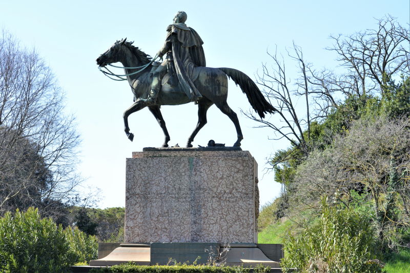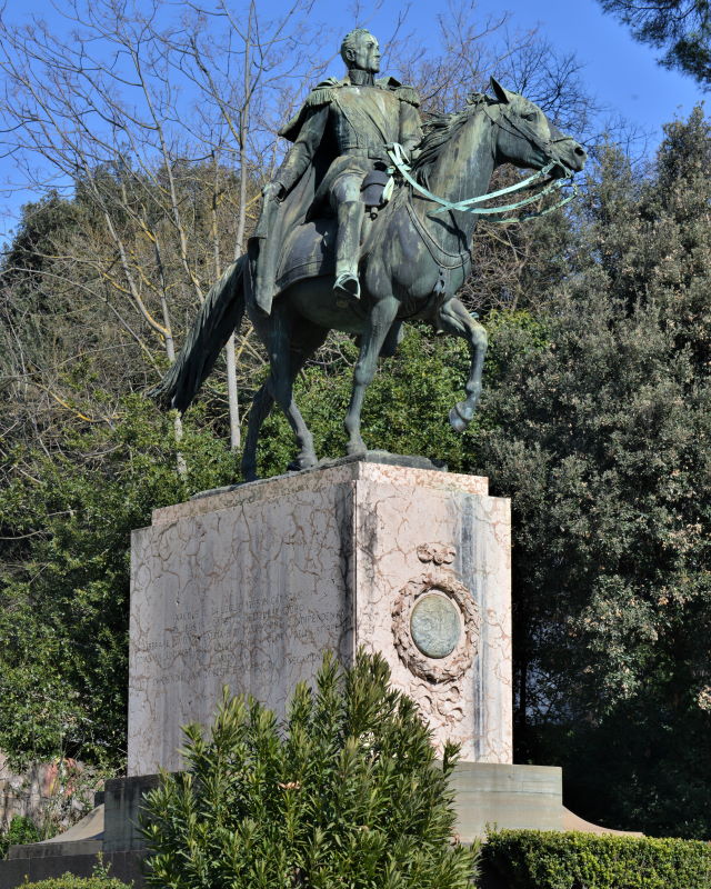 Simon Bolivar (1783 - 1830), generale venezuelano, divide con quello argentino Josè de San Martin (1778 - 1750), pure omaggiato a Villa Borghese con un monumento sul lato opposto a questo in esame, il merito di aver liberato i paesi dell'America del Sud dalla dominazione spagnola: a entrambi spetta il titolo di Libertador.