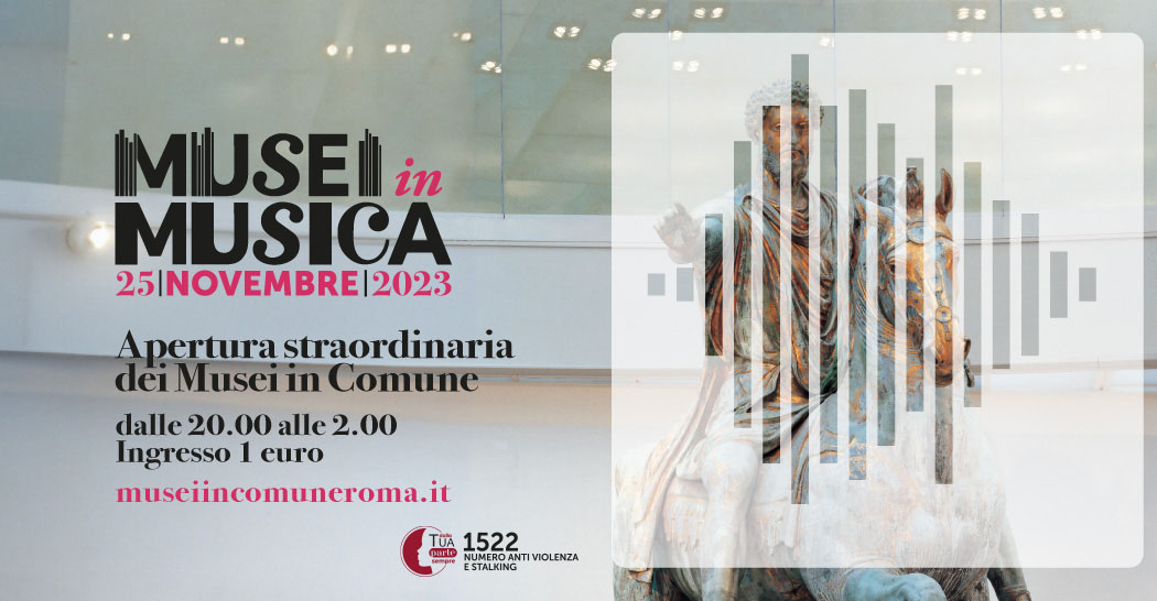 Sabato 25 novembre torna l’annuale appuntamento in notturna con “Musei in Musica”, la manifestazione – giunta quest’anno alla sua 13a edizione – promossa da Roma Capitale, Sovrintendenza Capitolina ai Beni Culturali, organizzata da Zètema Progetto Cultura e con la radio partnership di Dimensione Suono Soft.