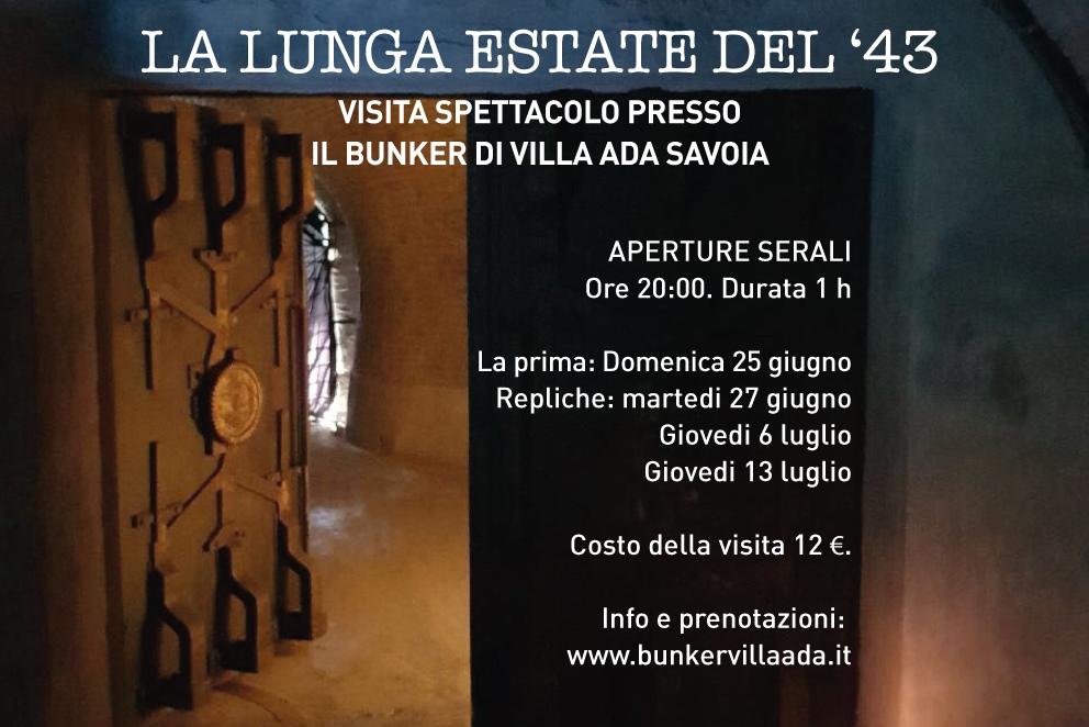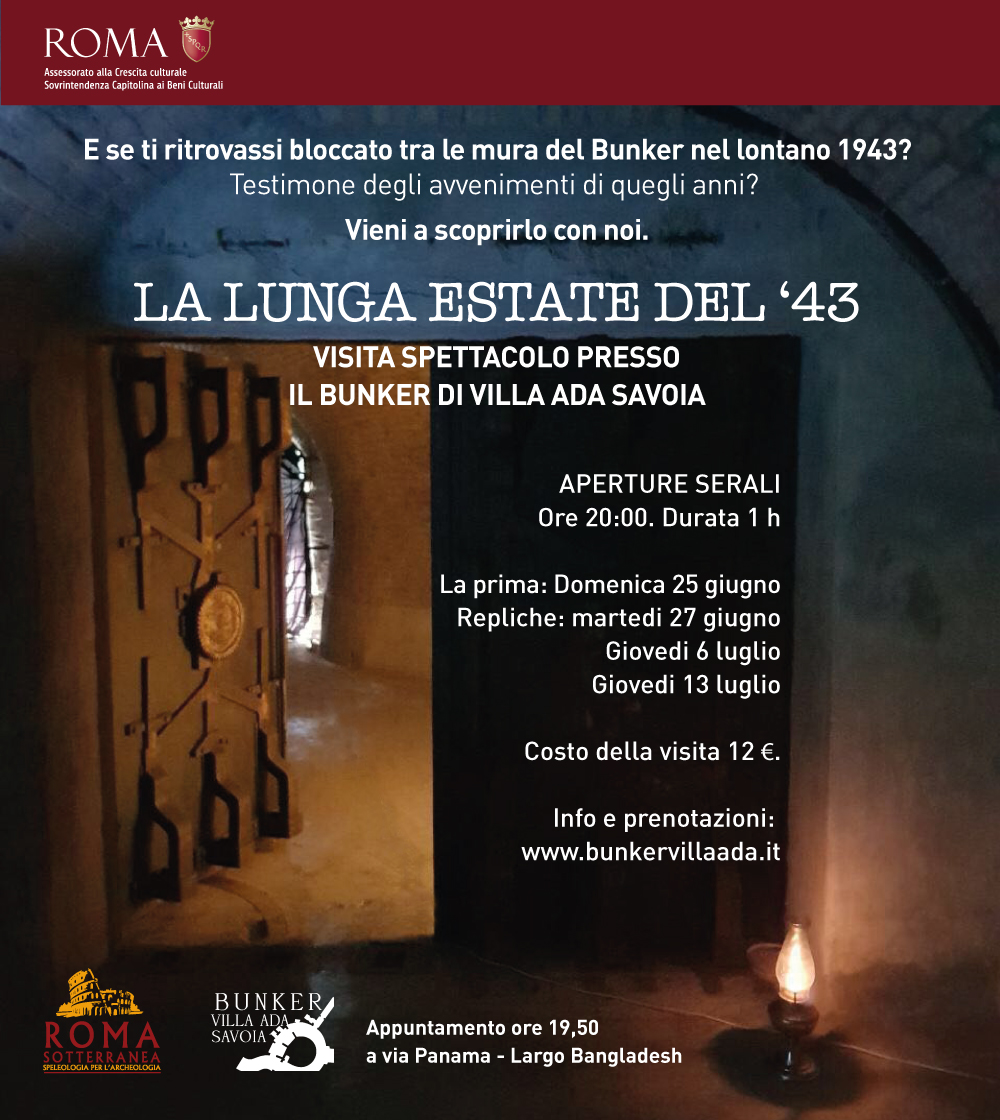 Con: Sara Trainelli, Ilaria Carmen Restifo, Danilo Zuliani. Il bunker di Villa Ada Savoia è aperto al pubblico da marzo 2016 grazie ad un’importante attività di recupero promossa dalla Sovrintendenza Capitolina ai Beni Culturali e realizzata dall’Associazione Roma Sotterranea, in virtù di una convenzione biennale stipulata tra i due soggetti a seguito dell’esito di un bando pubblico.