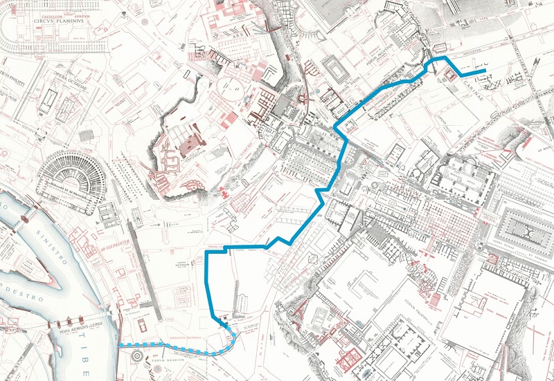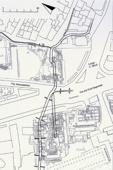 La Cloaca Maxima, la più grande di tutte le fognature antiche, è un’opera idraulica complessa nella quale si sommano diverse funzioni. La Cloaca Maxima ha subìto nei secoli molteplici trasformazioni per adattarsi alla vita quotidiana di Roma, che all’apogeo dell’Impero contava più di un milione di abitanti (fig. 1). Il tratto monumentale, di età imperiale, dal Foro di Nerva scende fino al Foro Romano (figg.2-4), dove è ancora visibile ciò che resta del primo condotto costruito in età arcaica (fig.5). L’origine della Cloaca, infatti, è molto più antica e la funzione per la quale fu progettata non fu soltanto quella di fognatura. Un collettore fognario provvedeva certamente alle necessità di gestione delle acque urbane, ma al contempo la sua conformazione come canale di bonifica garantiva un eccellente rimedio contro le esondazioni del fiume. In origine, infatti, l’opera fu realizzata per rendere agibile l’area nella quale doveva organizzarsi il Foro Romano, allagata dalle acque del Tevere che trasformavano periodicamente in una palude la valle compresa tra il Campidoglio e il Palatino (“Velabrum”). Le inondazioni annuali potevano talvolta superare i 10 m, allagando le aree più basse della città.