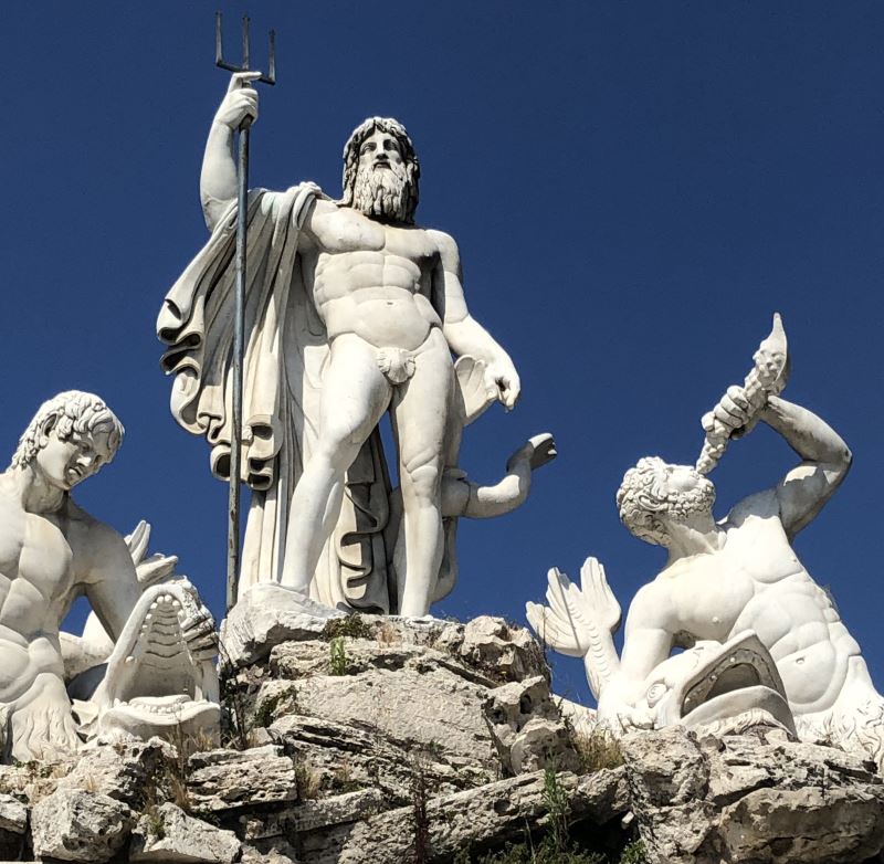 La fontana del Nettuno, costruita nell’emiciclo sinistro, fu ultimata nel 1823.