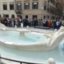 La fontana della Barcaccia, collocata al centro di piazza di Spagna, fu realizzata tra il 1626 e il 1629 per volontà di papa Urbano VIII Barberini (1623-1644)
