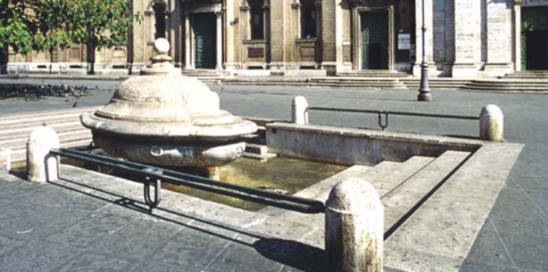 Nel 1924 venne ricostruita di fronte alla Chiesa Nuova, lungo l’asse di corso Vittorio Emanuele II aperto nell’ambito degli interventi urbanistici realizzati per Roma capitale. La vasca con il relativo coperchio è stata collocata a quota più bassa del piano di calpestio, al centro di un bacino a pianta quadrangolare. L’invaso era accessibile in origine attraverso quattro piccole rampe; l’ingrandimento delle rampe poste sui lati brevi si deve alla sistemazione della piazza realizzata nel 1998.