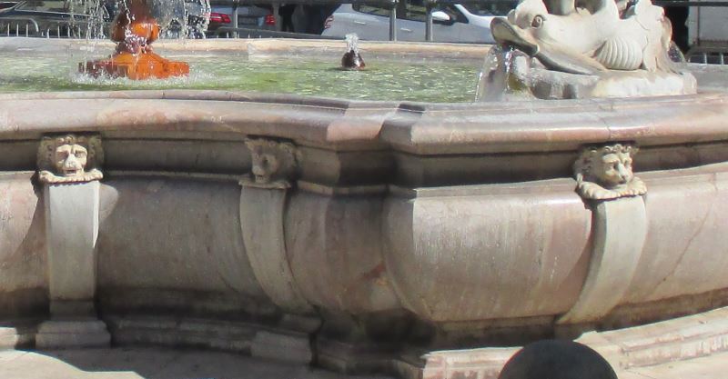 Nel 1830 la fontana subì altre modifiche a opera di Achille Stocchi in concomitanza con i lavori di pavimentazione di via del Corso. Fu infatti sostituito l’originario catino posto al centro della vasca con quello attuale in marmo bianco e, in luogo dei quattro parallelepipedi da cui fuoriusciva l’acqua, furono collocati i due gruppi composti da due delfini con le code intrecciate all’interno di una conchiglia.