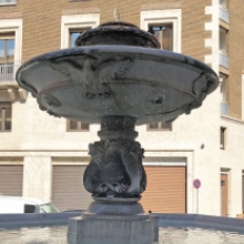 Della fontana originale rimane soltanto la vasca ottagonale, posta su due bassi gradini sopraelevati rispetto al piano stradale. Al centro si innalza un elegante balaustro in marmo cipollino che sorregge un catino decorato all’esterno da emblemi araldici della famiglia Borghese.