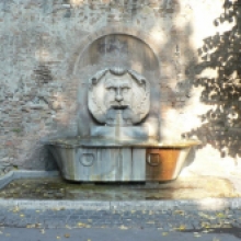 Addossata ad una nicchia del muro di cinta del Parco Savello, noto anche come giardino degli Aranci, la fontana è stata realizzata nel 1936 su progetto di Antonio Munõz.