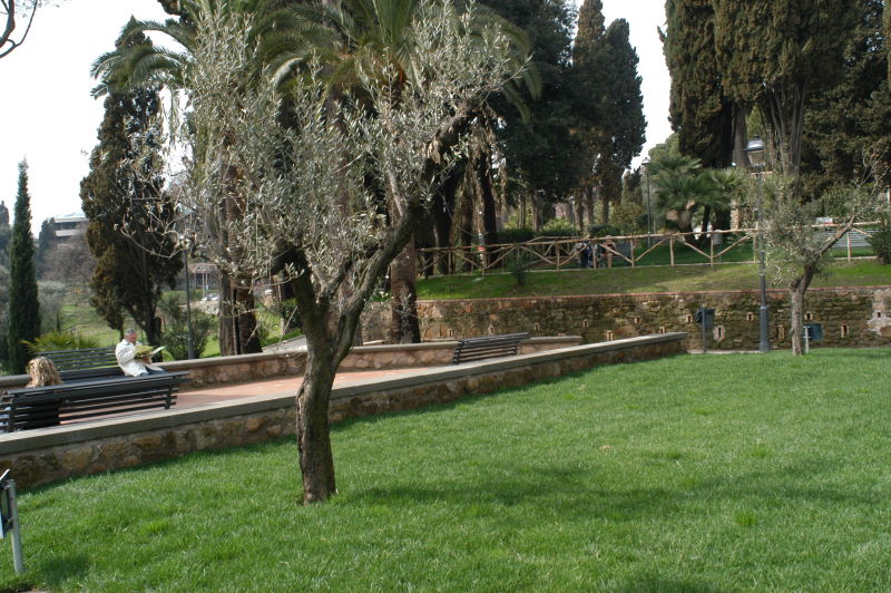 Il giardino, le fontane e le scalinate valorizzano il forte pendio con l'introduzione di prospettive in successione, già aperte sulla campagna circostante, ora intensamente edificata.